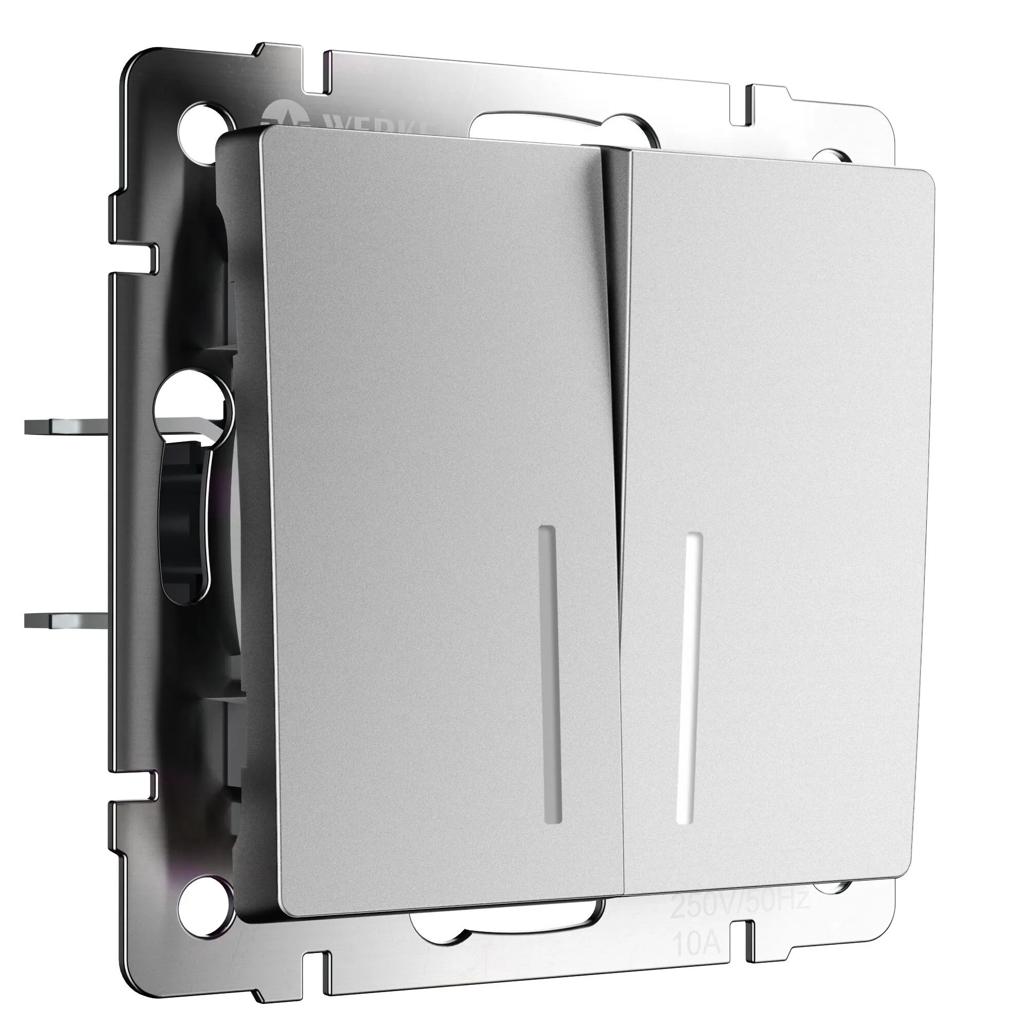 Выключатель двухклавишный проходной с подсветкой Werkel серебряный матовый — управление светом из двух точек + комфорт в темноте