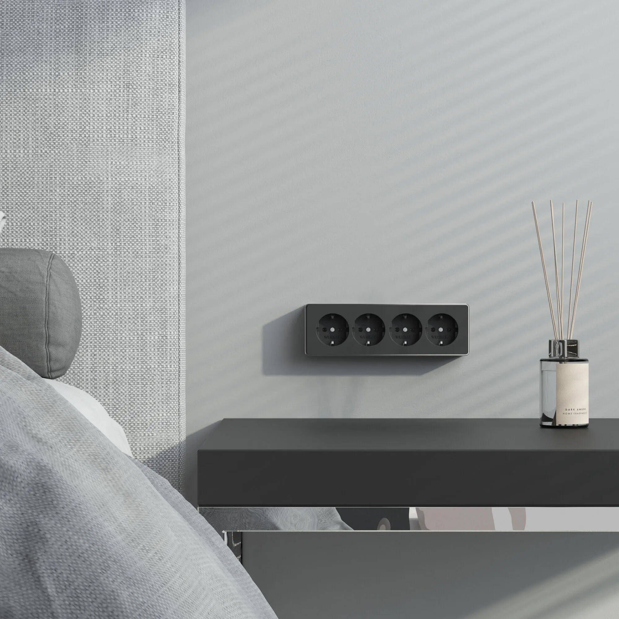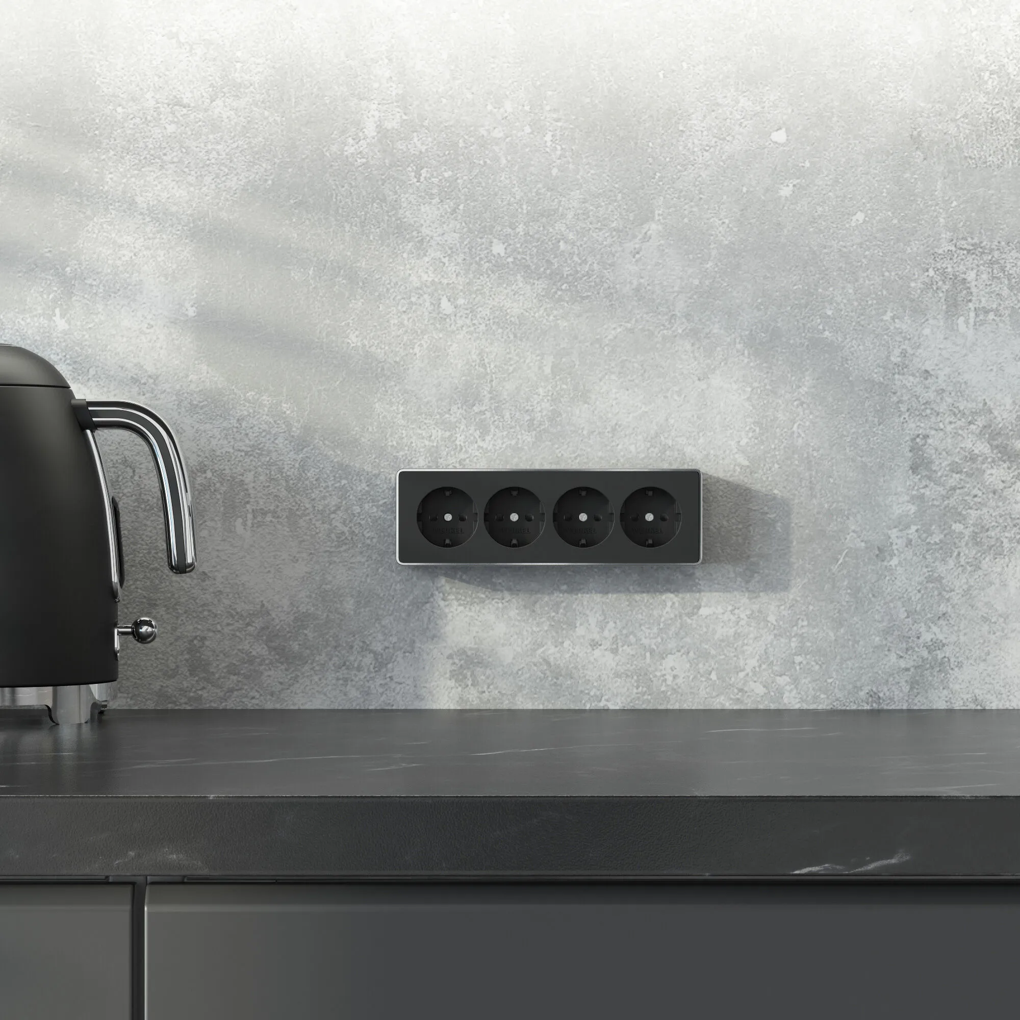 Четверная накладная розетка с заземлением и защитными шторками Gallant черная W5072258 — стиль, безопасность и надежность в одном решении