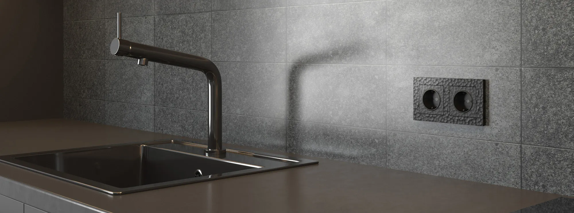 Новая фактура рамок и механизмов серии Hammer