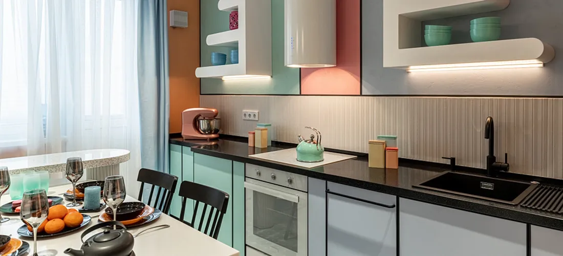 Кухня превратилась в пространство, где каждая деталь отражает характер сестер. Как отметили авторы проекта, даже технические элементы стали частью стилистического решения.