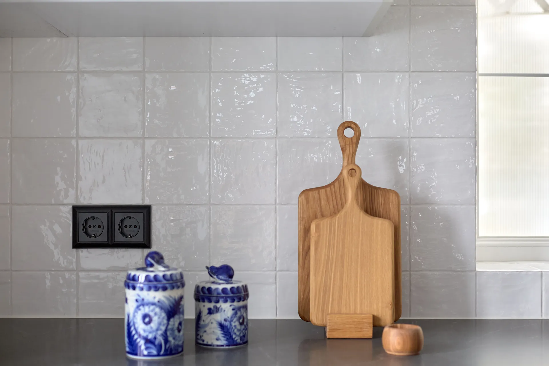 Особое внимание привлекли рамки серии Fiore, дополненные розетками и выключателями торговой марки Werkel™. Их форма повторяет линии кухонной «короны», создавая гармоничный ансамбль с интерьером. Черные рамки и механизмы стали ярким акцентом, который пришелся как нельзя кстати, добавляя пространству современный шарм и завершенность.